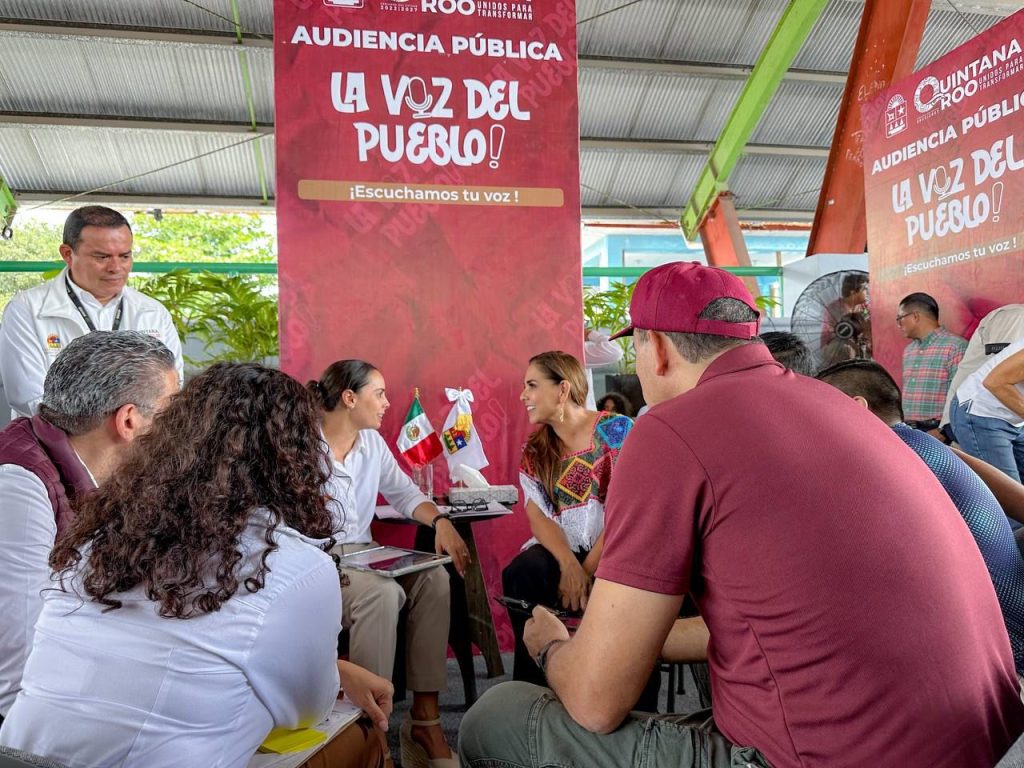 Cancún, Q. R., a 20 de mayo de 2025.- La Presidenta Municipal, Ana Paty Peralta, acompañó a la gobernadora Mara Lezama a la audiencia “La Voz del Pueblo”, en el domo deportivo de la Supermanzana 103, dónde atendieron directamente a más de mil 700 cancunenses, dando respuesta de manera inmediata y canalización efectiva a sus demandas en varios rubros.