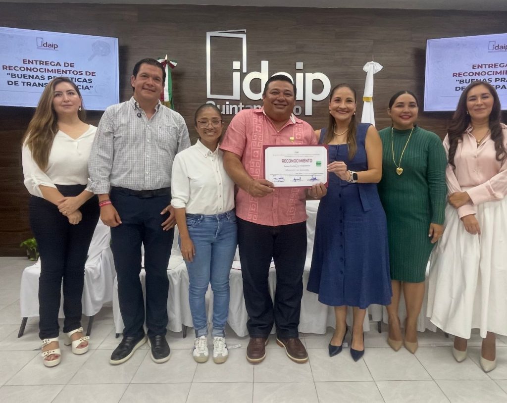 Cozumel recibe reconocimiento del IDAIPQROO por excelencia en el manejo de la transparencia